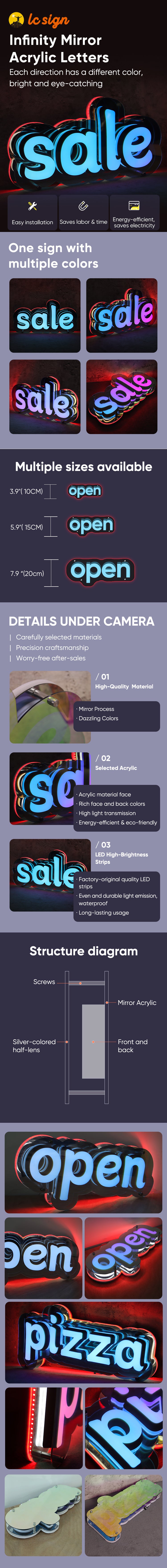 -70%Bright & Eye-Catching Infinity Mirror LED Acrylic Letters (Multiple Sizes Available)—